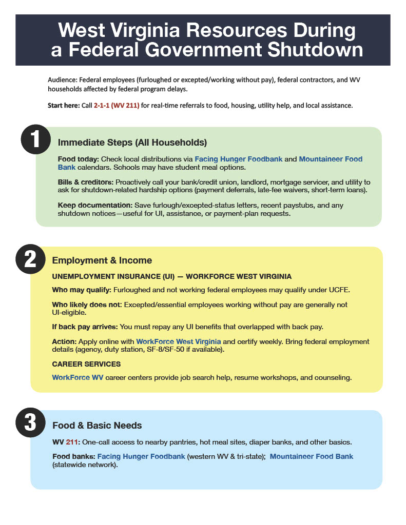 West Virginia Resources During a Federal Government Shutdown
